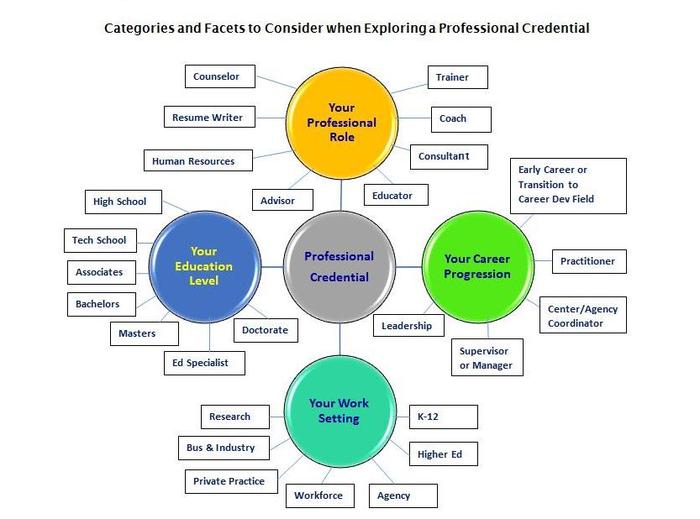 • If you are working on enhancing your involvement in the career field – what credential “ties in” with your background (experience, education and training), and therefore demonstrates to others your level of proficiency in career development?